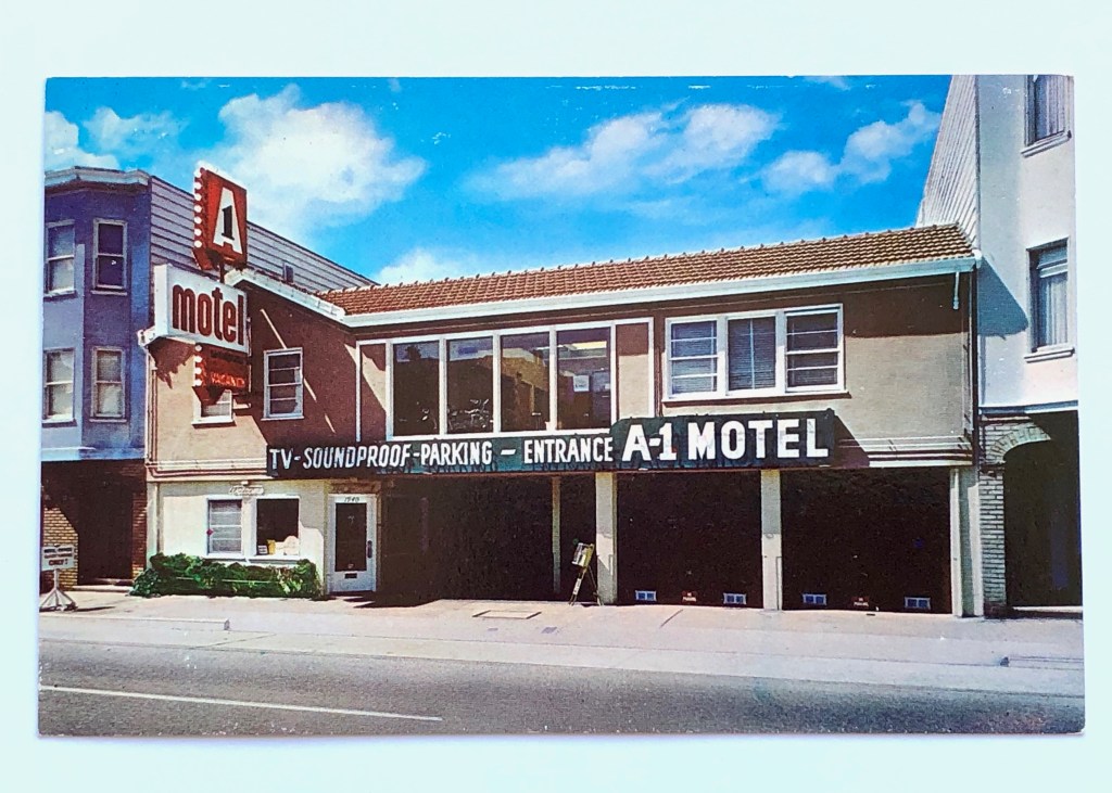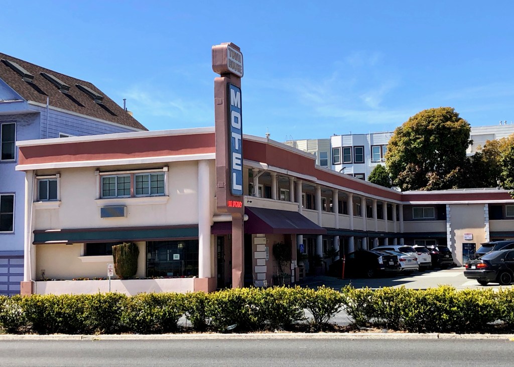These motels aren’t beauty queens, but they are worth acknowledging. For many built in the 1950s, the architectural purity has been chipped away and the cool mid-century styling is gone. But it’s not only the looks, it’s where this motel row lands in the timeline of San Francisco history that attracts me. I imagine late Depression-era travelers deciding on a short economical car trip to good ol’ San Francisco to gawk at the new Golden Gate Bridge, or a 1950s nuclear family loading up their giant car and landing at the A-1 Motel for a week. It’s nostalgia for a simpler time and a lot of fun to think about.
